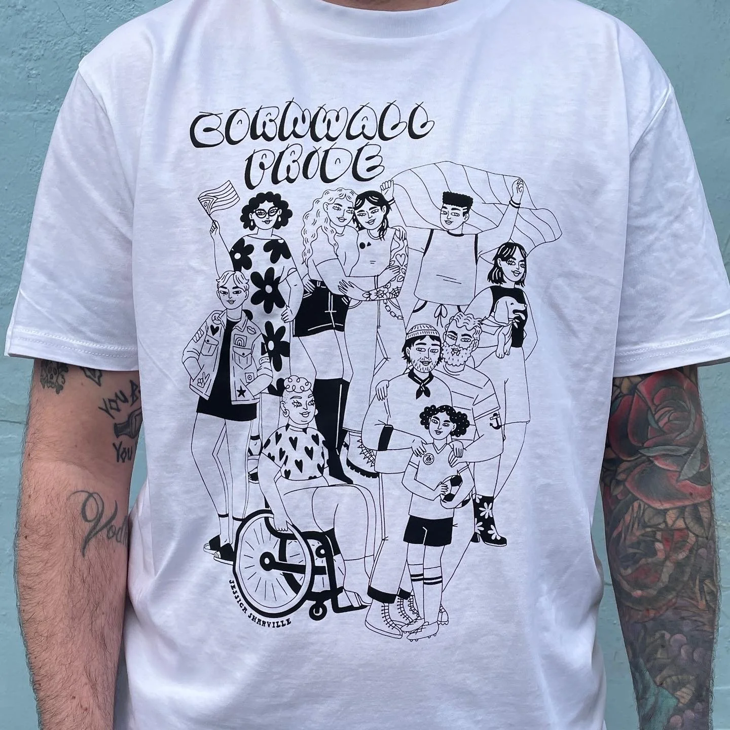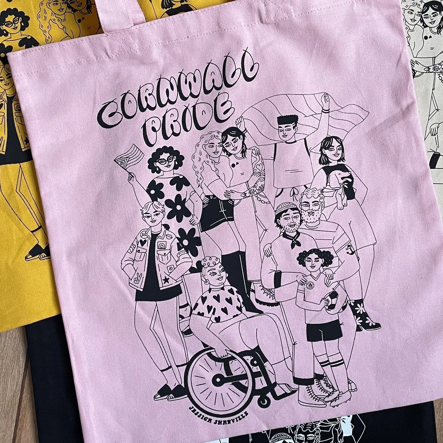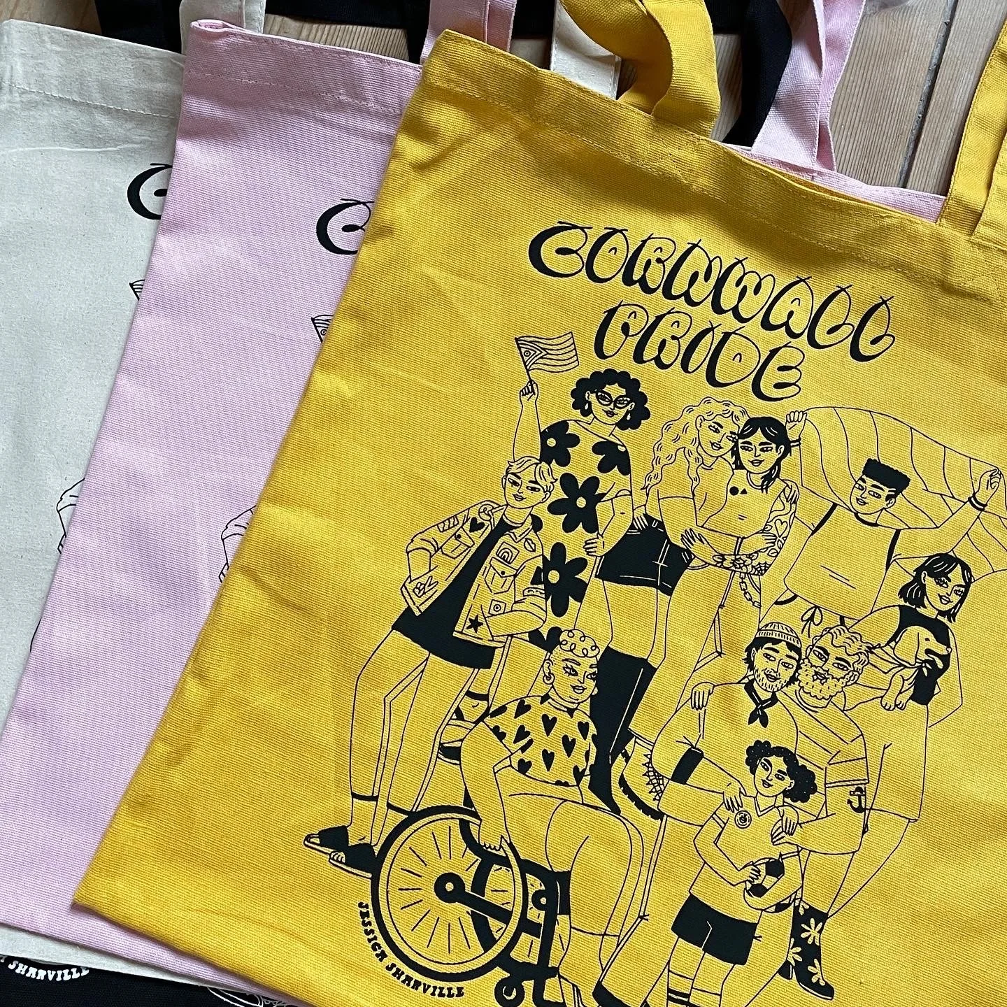 I collaborated with Cornwall Pride to create some new merchandise for their 12 amazing Prides they organise across Cornwall. It was amazing working with such an important company and charity, we wanted to make sure the design represented Cornwall Pride and all the different people that attend their amazing Pride events. We had incredible feedback at the events, seeing people relate to the illustration and the pride they feel seeing themselves represented was amazing.